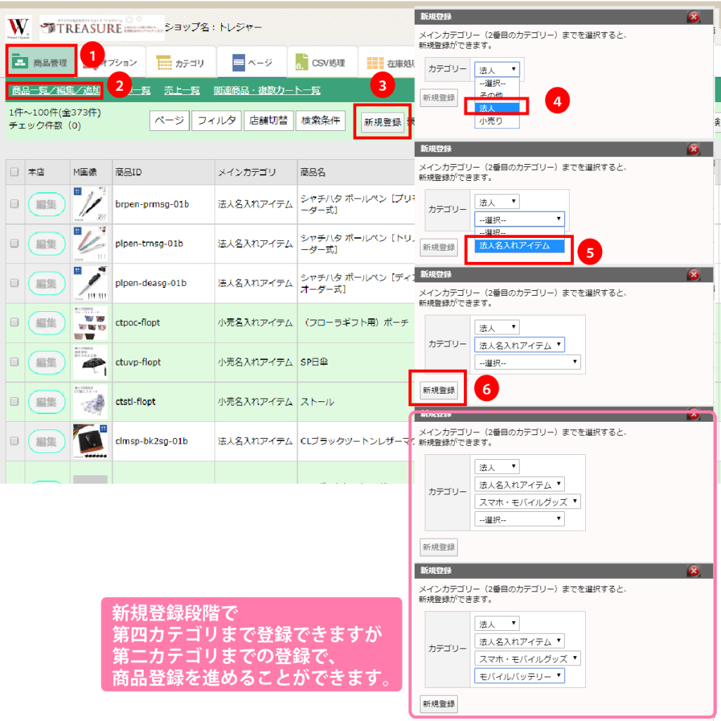 法人名入れアイテムを選択する場合が多いです。 - 新規登録をクリックします。