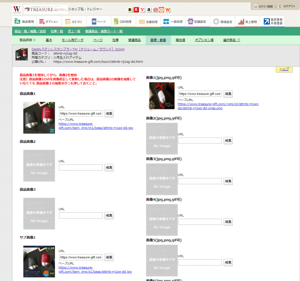楽天Gold、Yahooトリプル領域にアップロードする画像を主に登録します。