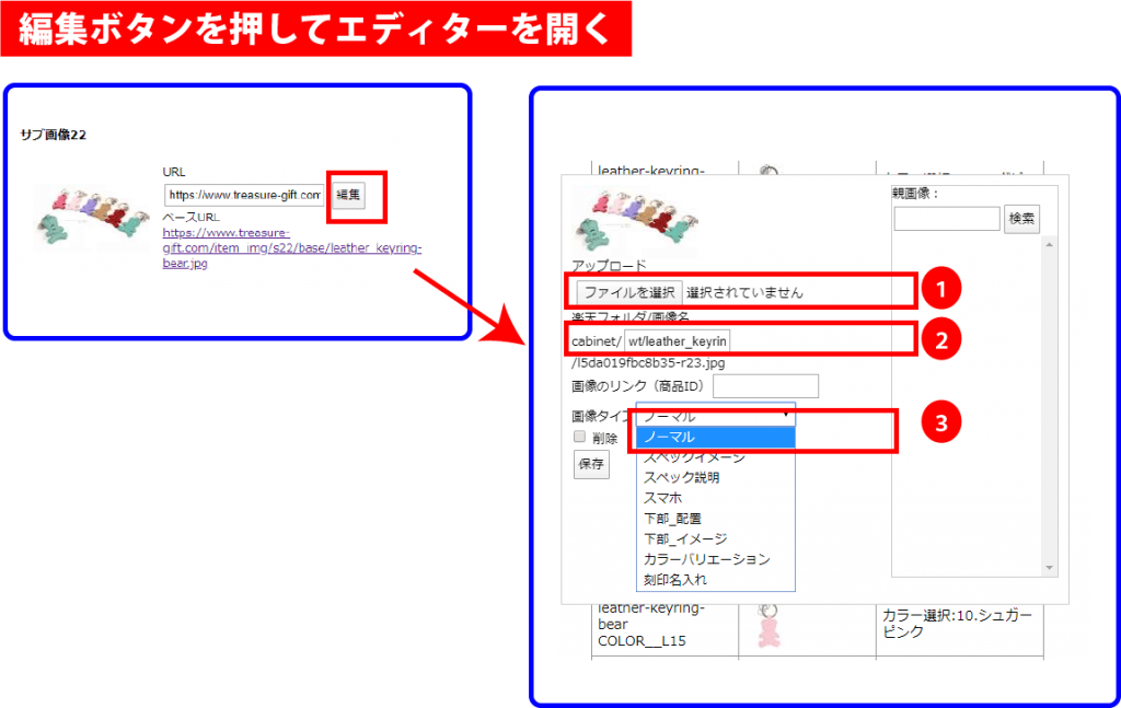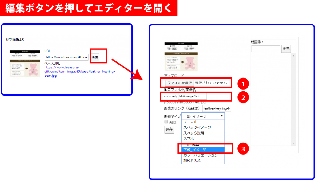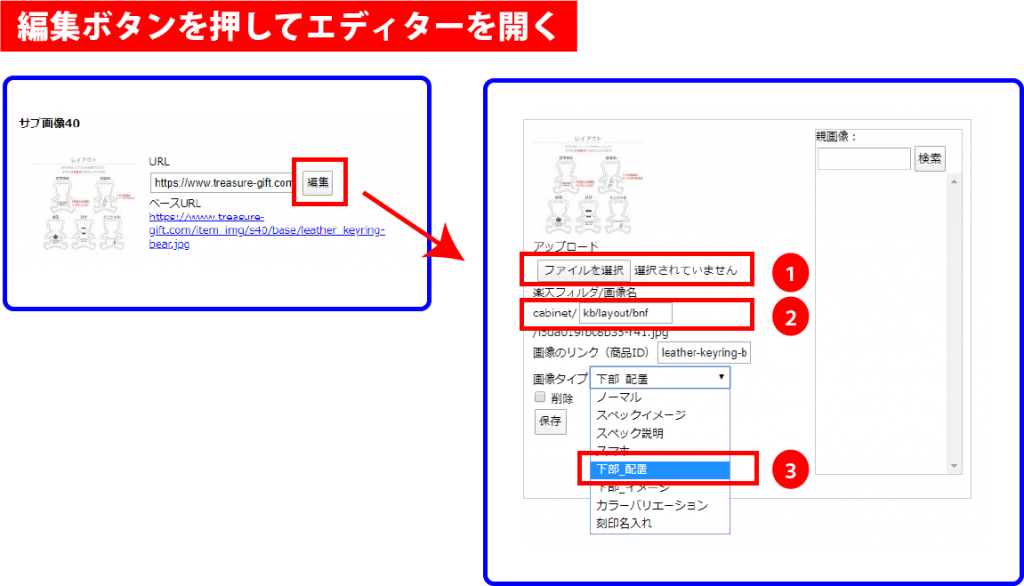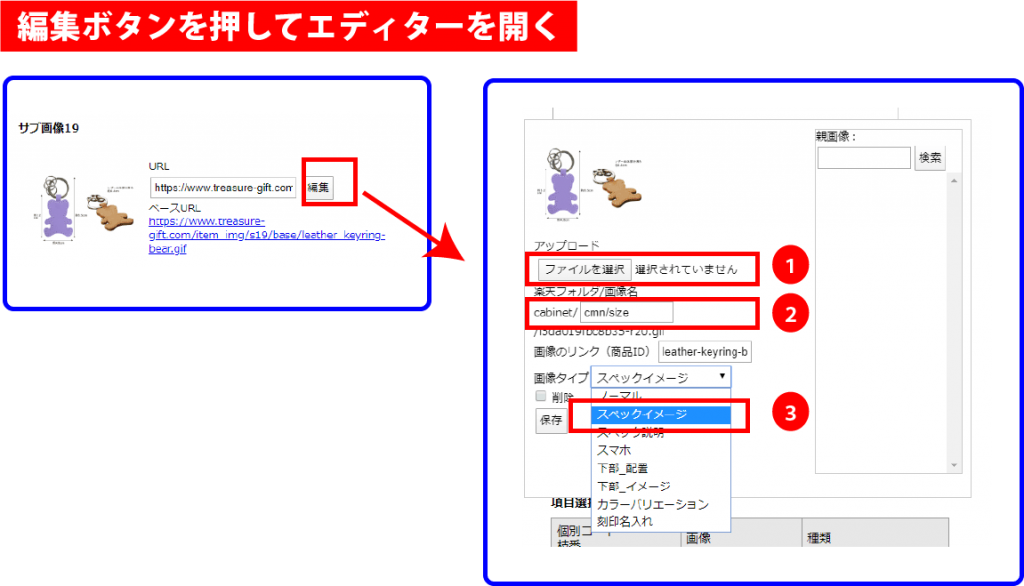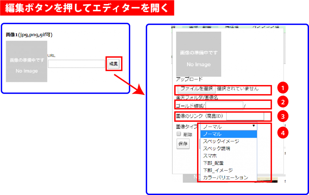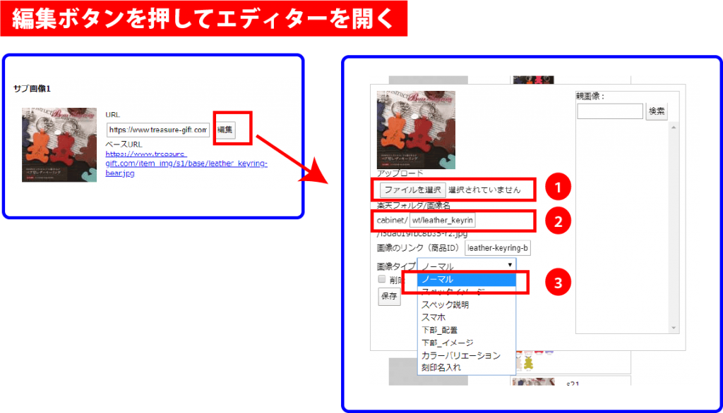 ※楽天urlが長すぎる場合は、任意で短縮名のフォルダを作成し、商品ごとに登録します。 - 3.画像タイプを選択