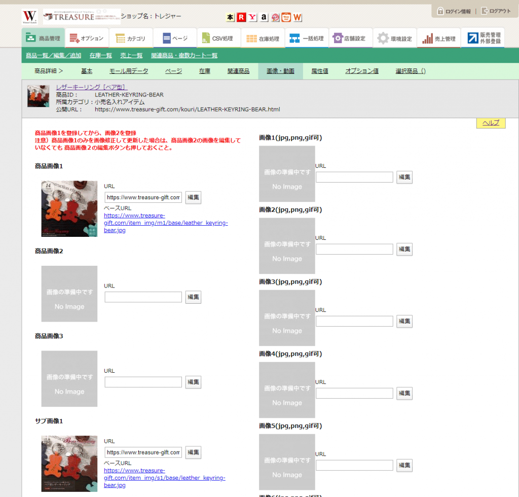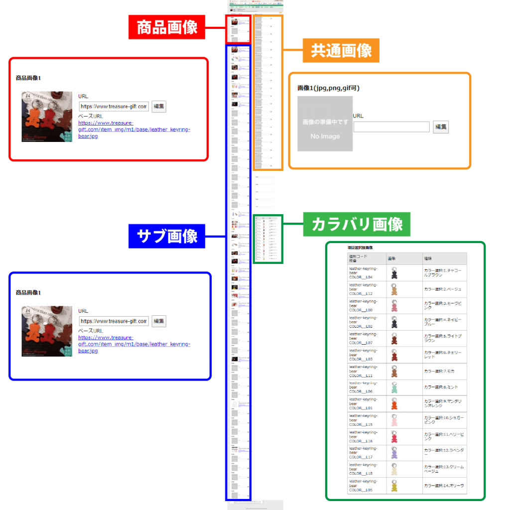 画像・動画ページで登録する画像は「商品画像」「サブ画像」「共通画像」の3種類です。